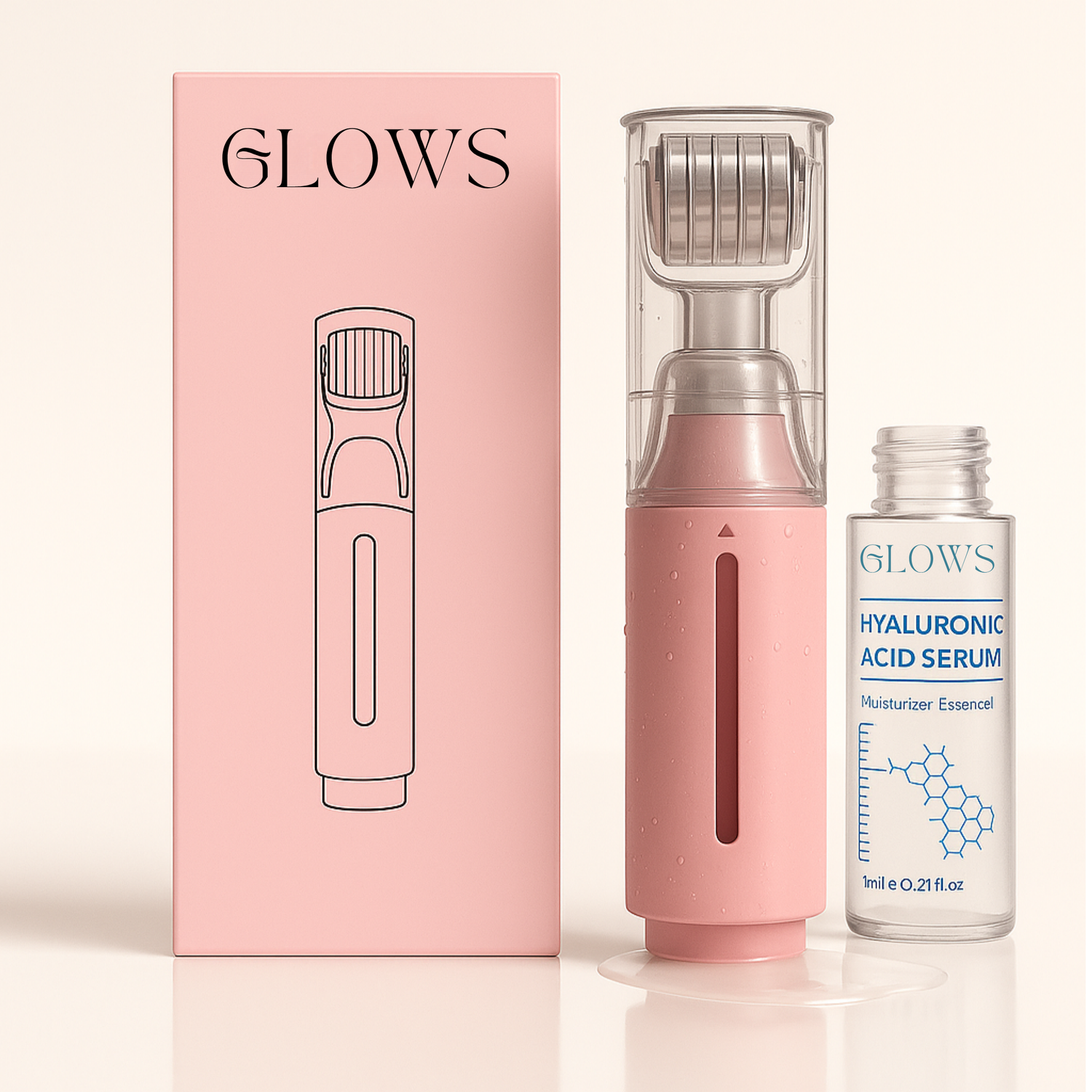 Notre sérum GLOWS™ contient un complexe d’acide hyaluronique, peptides, collagène et vitamine E. Il hydrate profondément, repulpe naturellement et nourrit la peau délicate des lèvres. Un soin haute performance, offert aujourd’hui avec ton Roller GLOWS™.